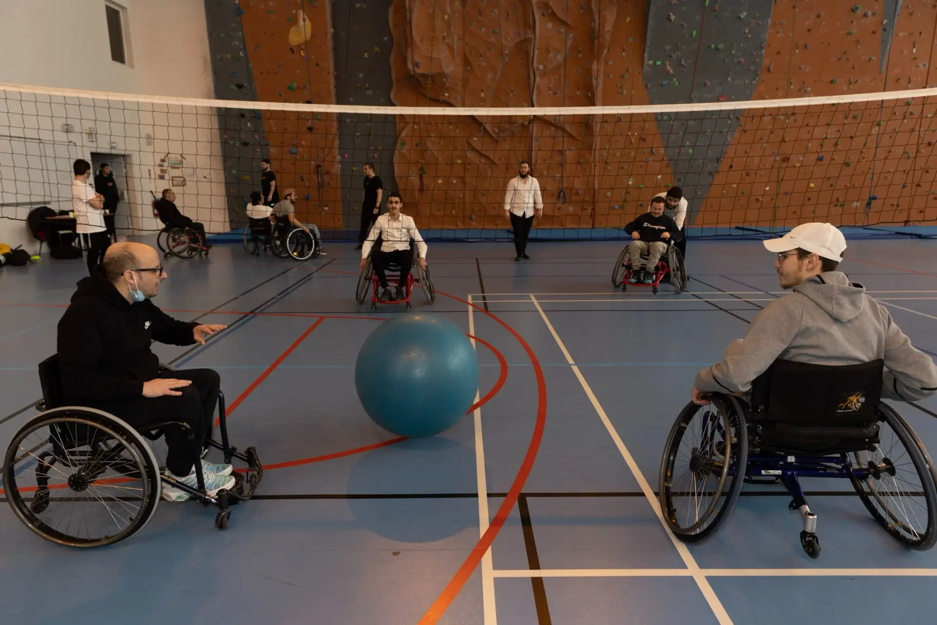 Un sport collectif en équipes de 3, accessible à tous les types de mobilité (debout ou en fauteuil). Chaque joueur a un rôle, et on s’amuse à taper le ballon ensemble en mettant les capacités au service de l’équipe.